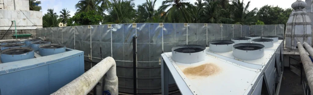 We were contacted to resolve a noise issue from 3 Chillers installed on the rooftop of Iskcon Temple in Juhu, Mumbai. Having 3 Chillers on the roof-top was creating a lot of noise for the residents around